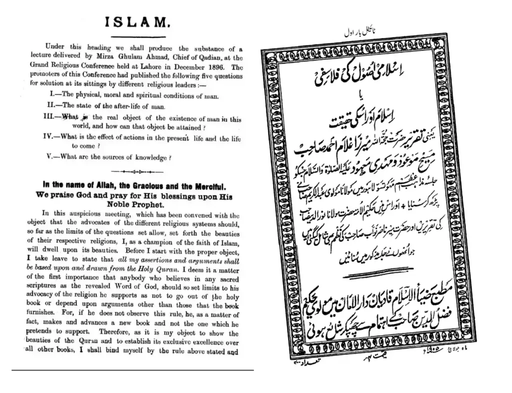 At the 1896 Conference of Religions in Lahore, Mirza Ghulam Ahmad delivered a groundbreaking lecture addressing profound topics like the afterlife, heaven and hell, reward and punishment, and the spiritual, moral, and physical conditions of man. His originality and clarity drew praise from leading thinkers of the time. Though his earlier proposal for a respectful, rule-based interfaith dialogue was not accepted, a Hindu gentleman later organized the conference. Five key questions were posed to all faith representatives. Days before the event, Ahmad published a revelation predicting his paper’s superiority. Delivered by Maulvi Abdul Karim of Sialkot, the lecture captivated the audience, and even secular newspapers like the Civil and Military Gazette acknowledged its excellence. Notably, the lecture avoided criticism of other religions. It was later published in The Review of Religions and sent to Count Tolstoy, who praised its depth and originality. To this day, it stands as one of the most powerful expositions of Islam’s teachings.