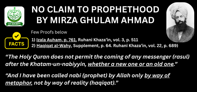 He emphasized the finality of prophethood in Muhammad (pbuh) and called any prophetic claim after him heresy. In Haqiqat-ul-Wahy, written shortly before his death, he reiterated that his use of the word “prophet” was metaphorical, meaning one frequently spoken to by God—not a real or legislative prophet. He firmly maintained this till the end. His consistent explanation proves he never claimed actual prophethood, only spiritual communion as a muhaddath. Source Source: Haqiqat-ul-Wahy, Arabic Supplement, p. 16, Page 64-66.